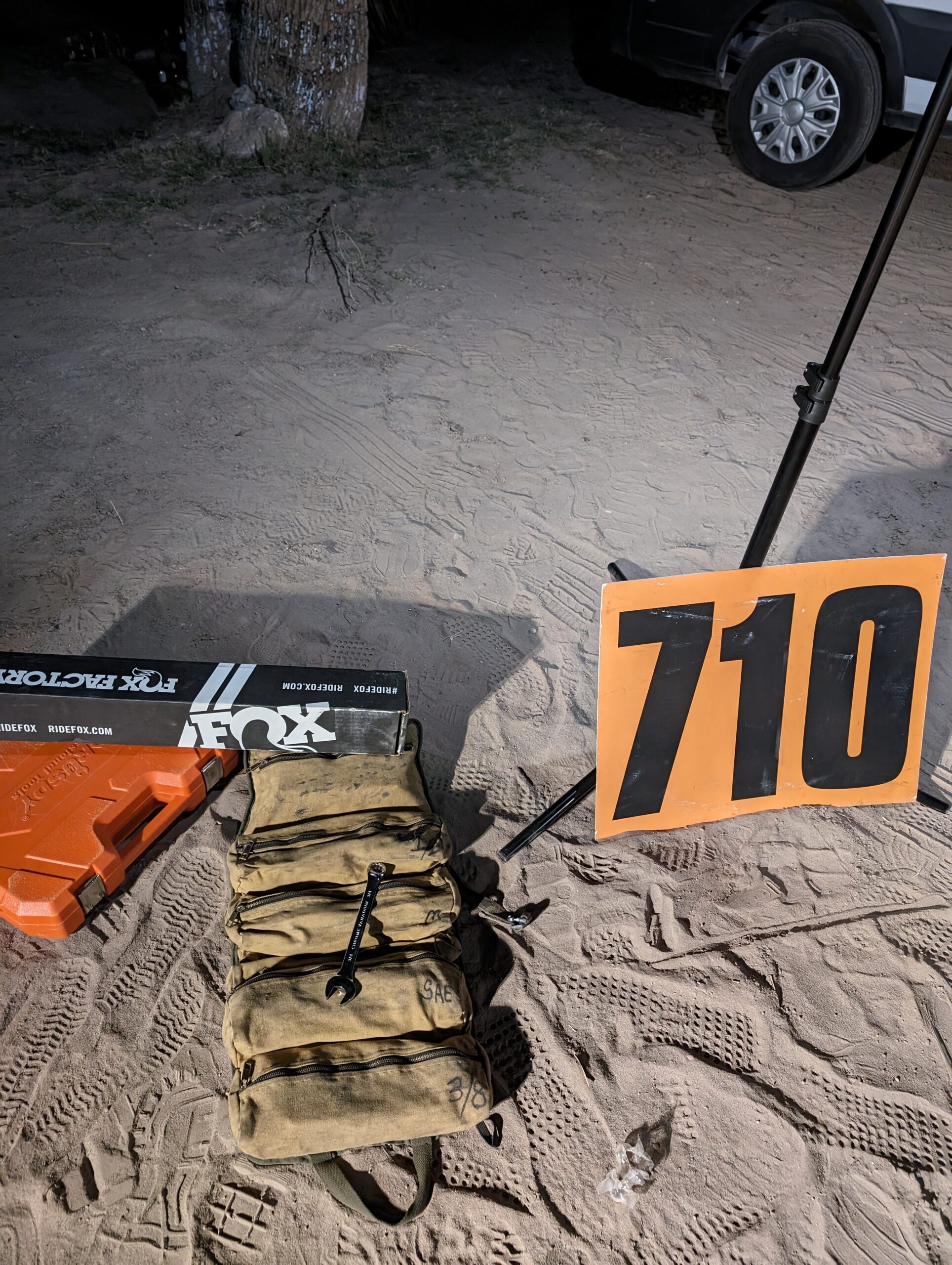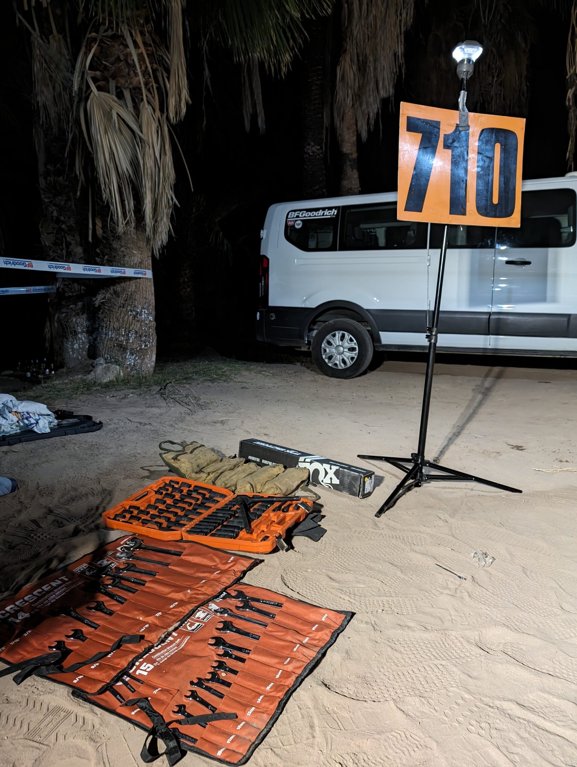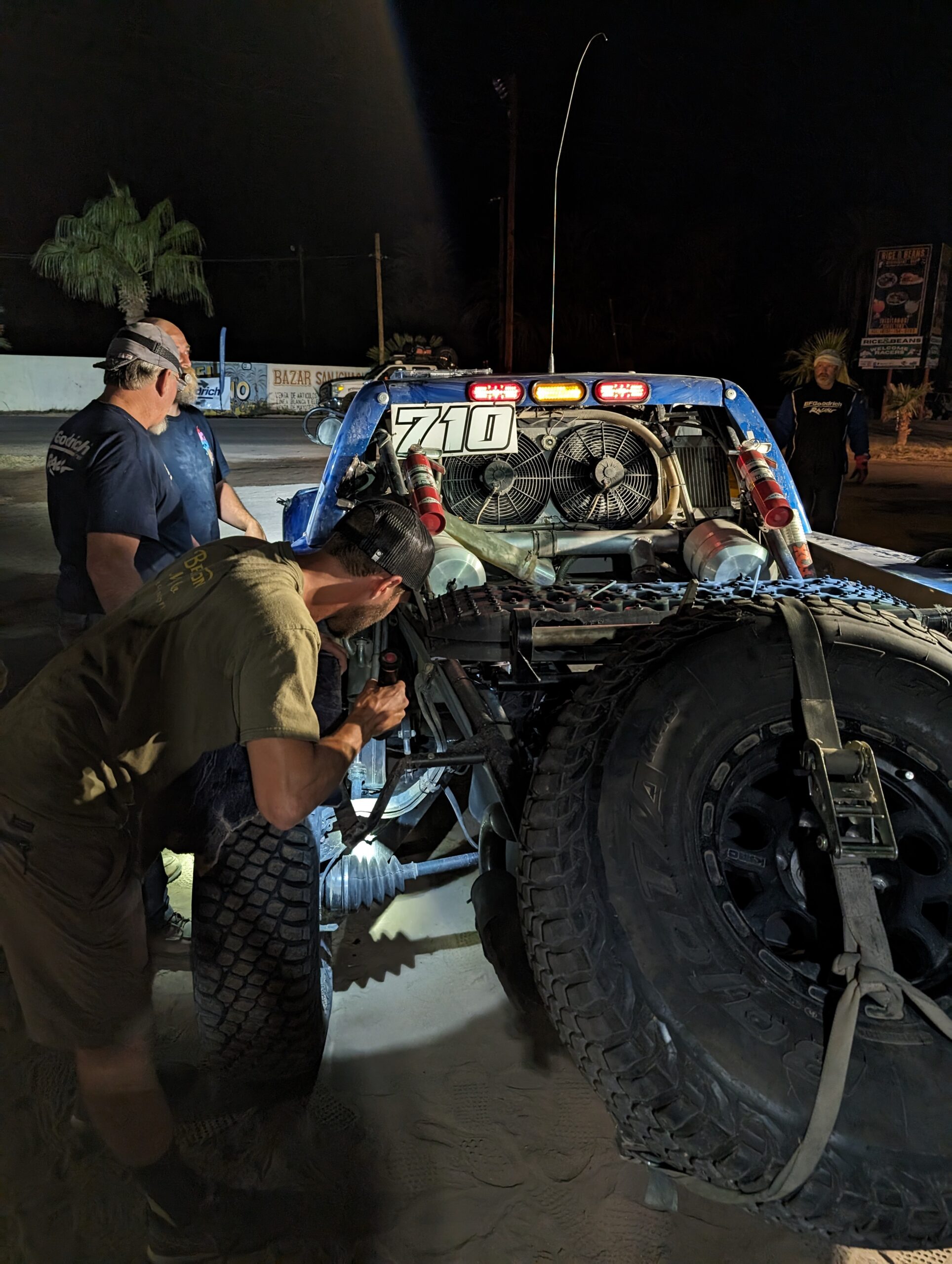 It’s around 3am, and everyone is very tired. My absolutely least favorite road is the dirt road from the highway to El Arco. It should be great, it’s wide and graded and straight and flat. But being a slow driver, I can’t comfortably make the truck go fast enough to hit the good harmonics on the road, so it’s just a long punisher. I should still be driving, Berne just got out of the racecar, he’s wiped, but he agrees to get us down the road to the highway. Tensions are high, we’re both tired, so I’m slow to call out a bad pothole and Berne is slow to avoid it, and we slam into it. We do manage to warn the HellTrain behind us, but we’re going to need to stop and see if we’ve done anything tragic once we get to some pavement. I think that sounds like a story for next week.
